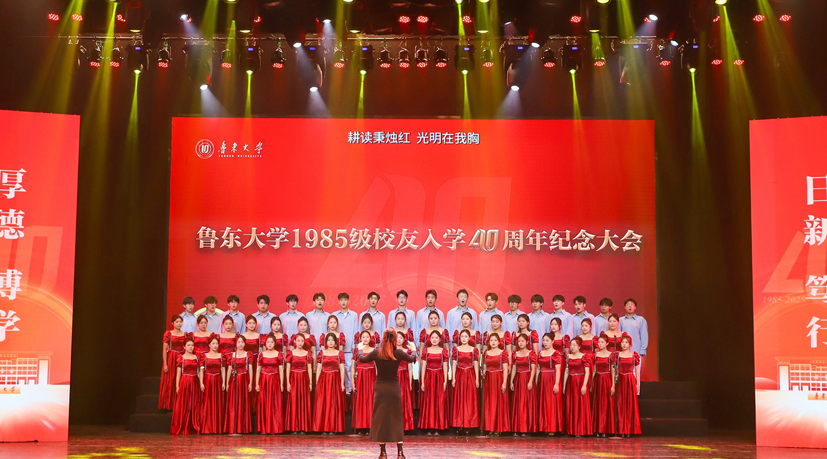期间,我校师生为广大校友带来《四十年后喜开颜》《马铃摇响幸福歌》《跨越40年的歌声》《母校最美的时候》等文艺节目。最后,全体与会人员齐唱校歌《青春鲁东》,大会在校歌激昂奋进的旋律中落下帷幕。