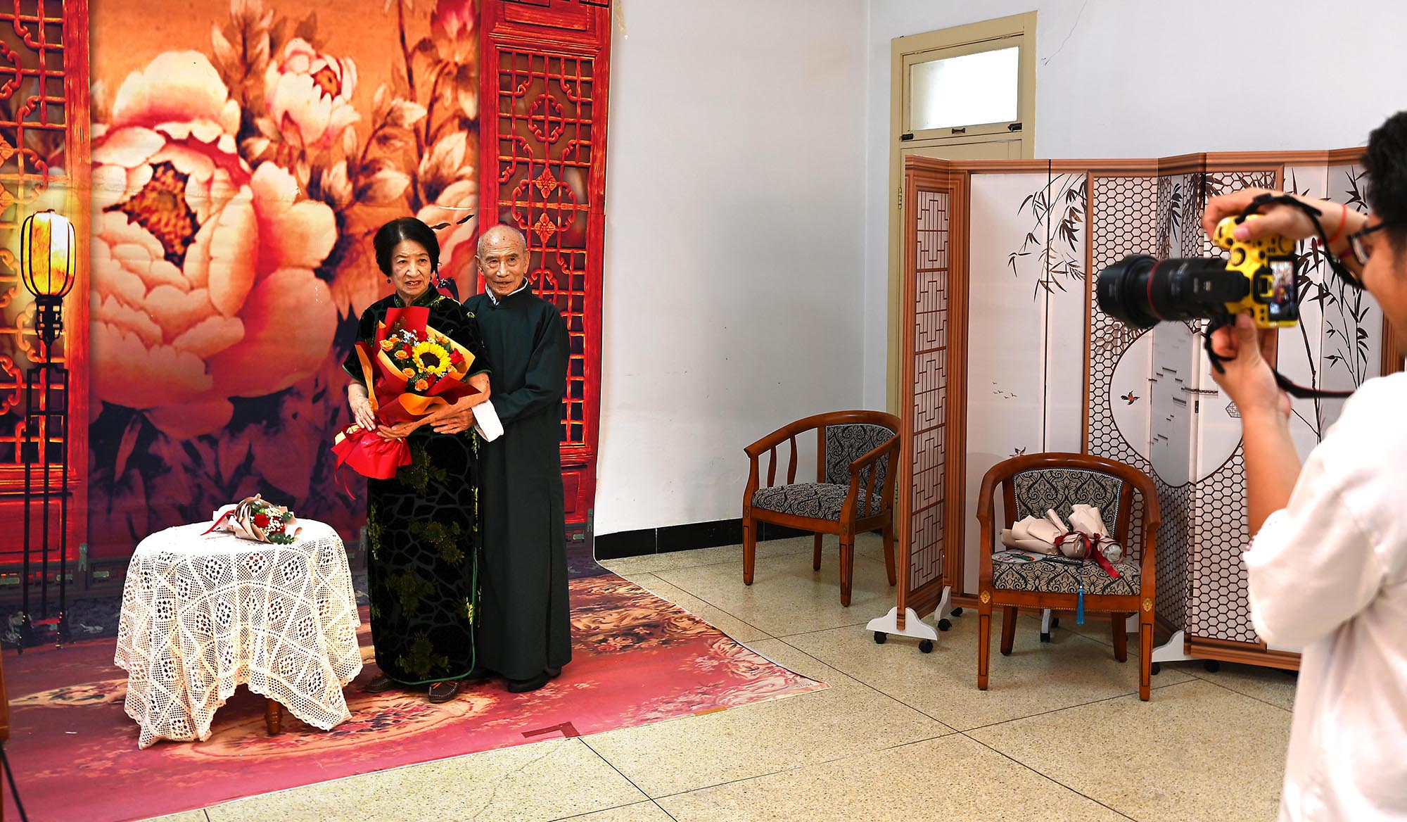 定格瞬间,记录幸福与温暖。离退休工作处在重阳节到来之际特别策划了“致敬岁月•金晖留影”活动,为学校80岁以上及2025年是金婚的离退休职工提供专业的摄影服务,免费提供照片洗印和相框装帧服务。这份特别的关爱,也让老同志们深切感受到了离退休大家庭的温暖。