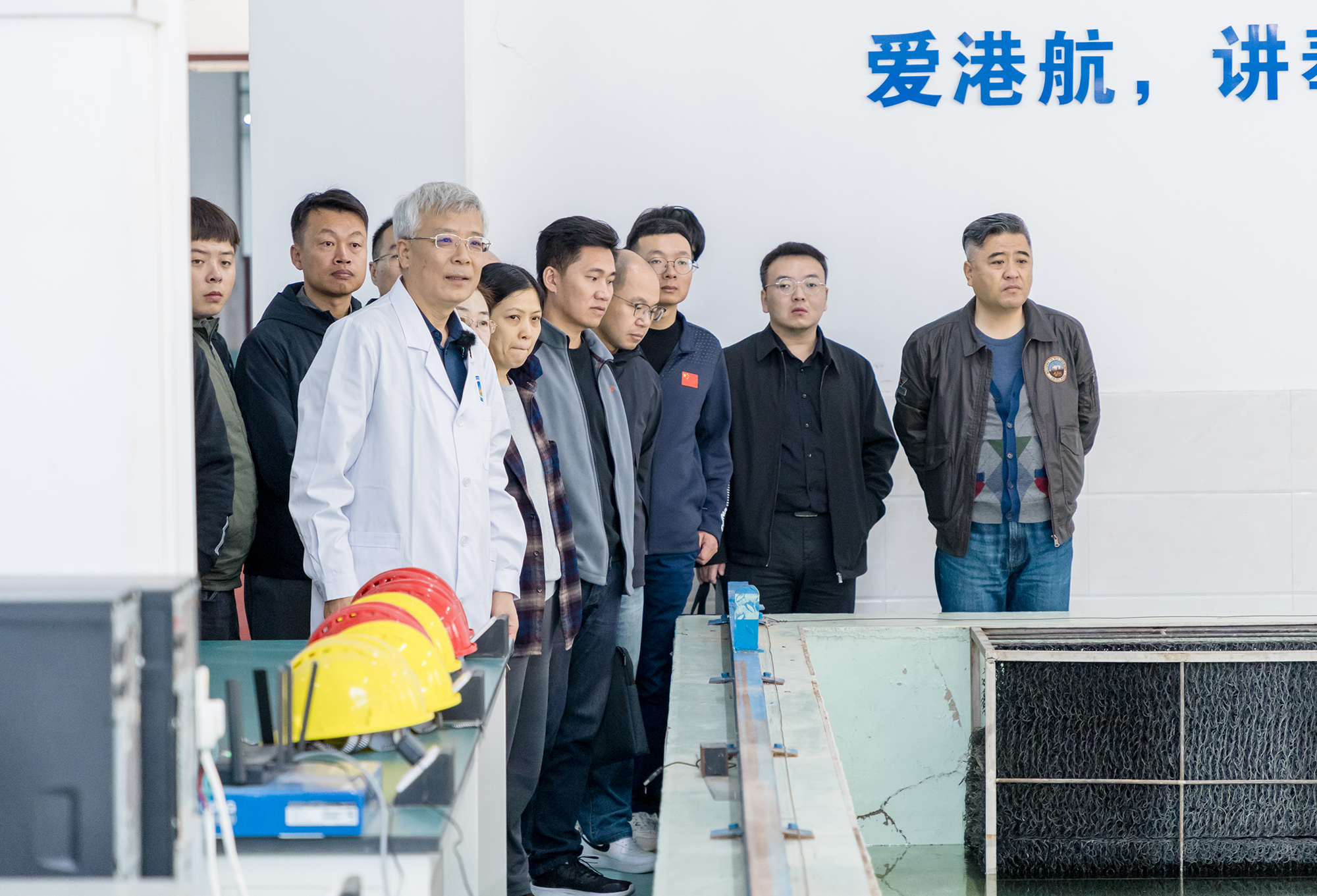考察团先后参观了我校核电冷源安全物理模型实验室、海岸工程实验室、滨海核电冷源数字孪生预警平台等,深入了解我校在核电冷源安全领域的实验设施和科研成果。王庆教授系统介绍了大型波流水槽、多功能港池、立式循环水槽、立式循环水洞与直流式低速风洞等实验装置。在冷源安全物理模型实验室,考察团现场观摩了滨海核电取水口门和泵房海冰输运-堆积、脱落海带取水明渠堆积-堵塞、冷却塔盐雾扩散、承压取水管道近壁面水动力以及波浪作用下沙滩剖面演化等试验过程,了解了我校在服务核电冷源安全方面的科研平台能力与技术积累。随后,考察团成员观看了我校滨海核电冷源安全团队自主研发的数字孪生智能预警系统,该系统具备融合多源数据、海生物风险预测预警、应急防控情景模拟等核心功能,能够实现提前24小时的堵塞风险预警,并为现场应急管理提供处置策略。