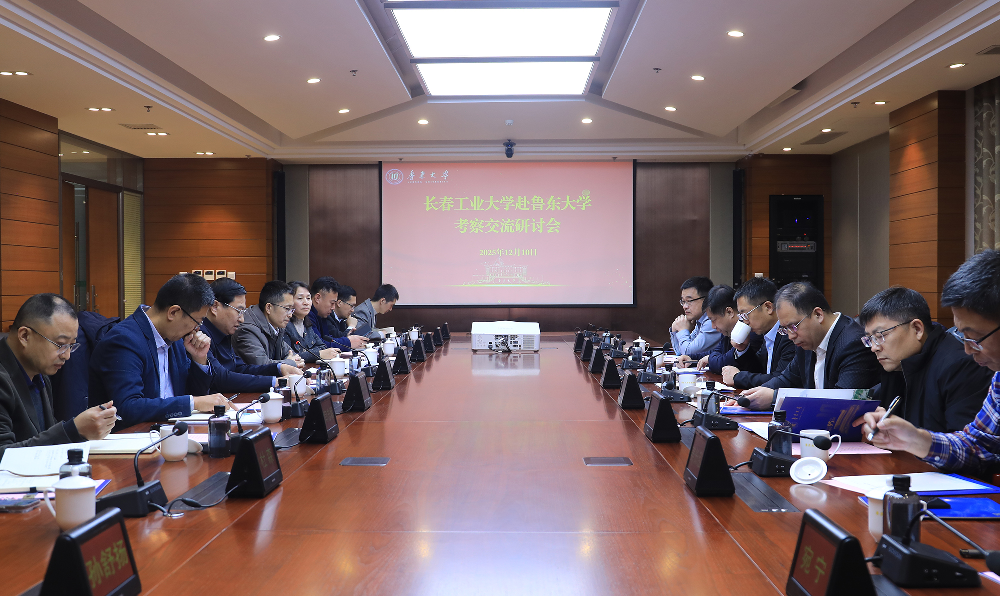 2025年12月10日,长春工业大学党委副书记、校长付跃刚教授一行来校调研并举行座谈会。我校党委副书记、校长李合亮教授出席座谈会并致辞,党委常委、副校长岳远彬、陈厚教授出席活动。