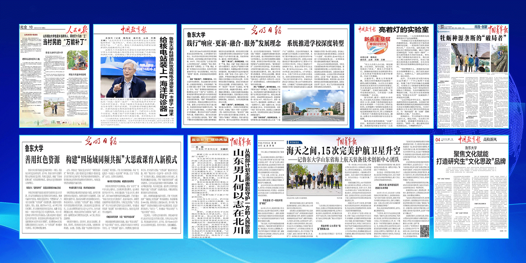 持续强化新闻宣传,主流舆论引领更加巩固壮大。建立常态化选题策划机制,做到上下联动、内外协同,形成了文风短、实、新,图片美观大方,发布时效性强的新闻工作理念,新闻点击量从200左右提升到3000左右,宣传和舆论引导能力实现新跃升。每年在中央电视台新闻联播或专题节目有内容播出,在《人民日报》《光明日报》《中国青年报》《中国教育报》、人民网、新华网等国家级主流媒体发布深度报道510余篇次,年均增长率20.5%;在山东卫视、《大众日报》等省级以上主流媒体发布深度报道1500余篇次,年均增长率18.3%。秉持“常改常新”的理念,优化升级学校官方网站,打造集功能性、美感性与用户体验于一体的智慧校园信息平台。顺应时代发展要求,实现从传统硬性宣传向柔性软宣传的转变,重点加强学术成果、科研创新和学科建设的深度报道,全面提升学校的影响力和美誉度。连年获评“全国品牌影响力高校”“山东教育新闻宣传先进单位”“山东最佳社会声誉高校”等荣誉称号。