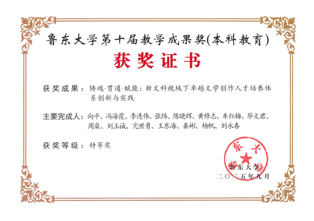 以立德树人为根本任务,人才培养质量稳步提高。学院大力推进专业认证与升级,汉语言文学、历史学专业先后通过教育部师范二级认证,两个专业继汉语言专业之后均入选国家级一流本科专业建设点。深化教育教学改革,获批9项省教改重点项目,2025年荣获山东省第十届教学成果奖特等奖,实现了历史性突破。学院通过打造金课、强化实践,构建高质量育人体系。新增2门国家级一流课程,建成2个省级示范教学组织。积极抢抓数字化发展机遇,2025年成功获批山东省数字人文特色学院,增设“数字人文”微专业。与教育部语言文字信息管理司、科大讯飞等单位共建合作基地,全面开启“AI+人文”融合发展新路径。推行“赛教融合”模式,将“挑战杯”等赛事融入培养过程,获国家级奖项2项、省赛特等奖及一等奖9项,获批大创项目37项。加强过程培育,研究生获省级创新成果奖2项、优秀硕士学位论文9篇,“师范生技能大赛”“田家炳杯”等教学技能竞赛获奖41项。实施就业质量提升工程,建立全程化就业指导体系。总体就业率稳定在95%以上,高质量就业率突破50%。385名毕业生考取研究生,其中近100人进入北师大、南大等名校。
