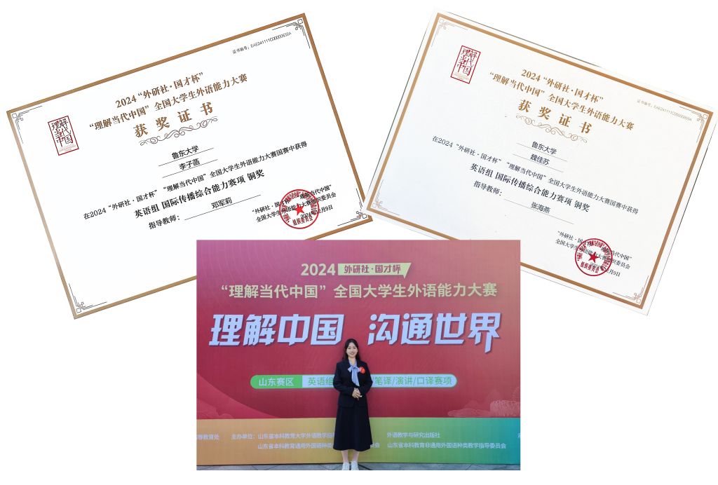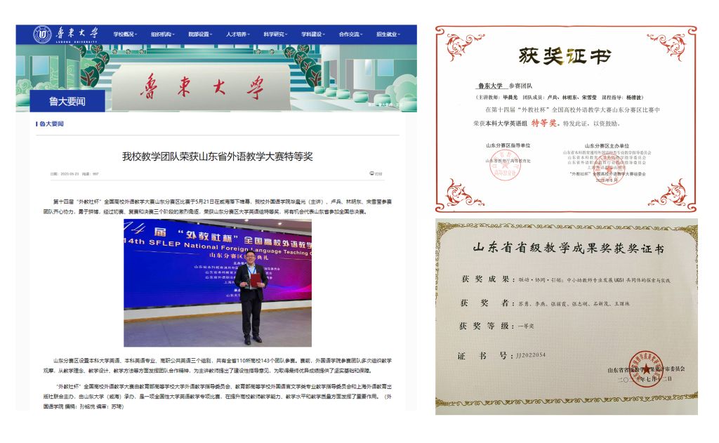 教学改革纵深推进,育人质量稳步提升。英语专业在软科中国大学专业排名中位列第186 位,“翻译理论与实践” 获批山东省一流本科课程,9 门在线专业课程上线省级平台。教师团队屡获佳绩,斩获山东省教学创新大赛、青年教师教学比赛等省级奖项,获山东省高等教育教学成果一、二等奖各 1 项。学生竞争力突出,师范生从业技能大赛获省级一等奖 10 项,外语专业四八级过关率持续高于全国同类院校 20 余个百分点,大学英语四级上线率超 70%;在全国大学生英语竞赛、“外研社・国才杯” 等赛事中,累计斩获国赛特等奖 25 项、一等奖 316 项及大批省赛奖项。