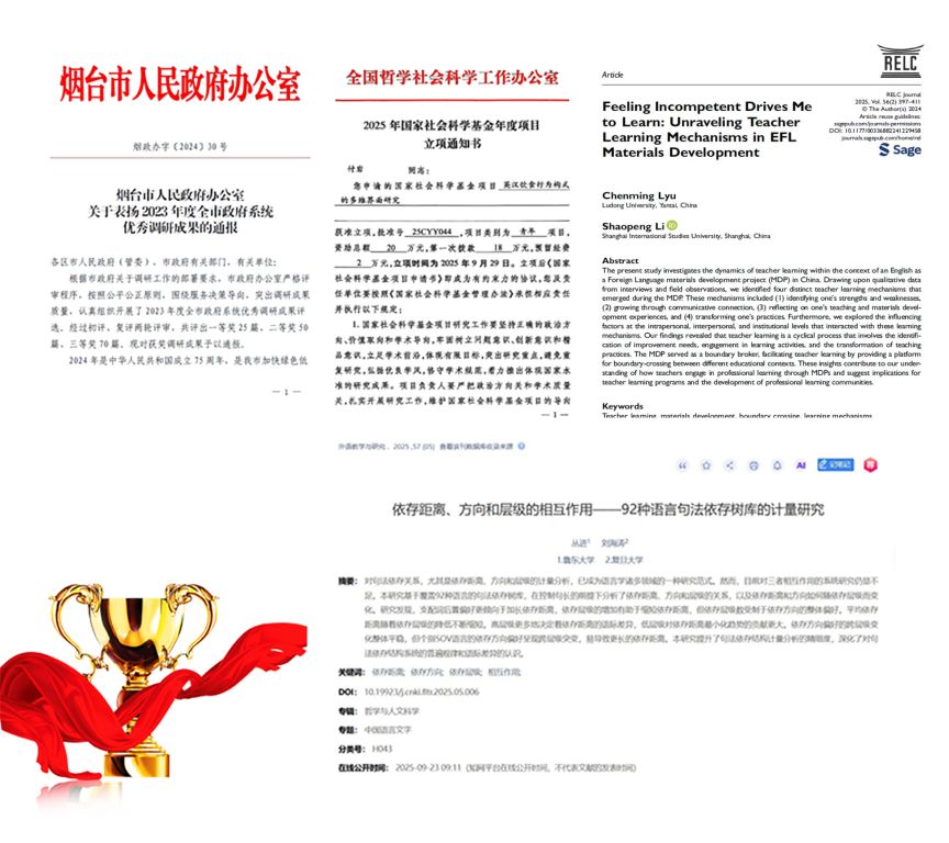 科研创新提质增效,服务社会成效显著。获批国家社科基金项目8项、省部级以上课题18 项,发表 CSSCI/SSCI 论文50篇(含顶刊论文),出版专著(译著)96 部,斩获省部级以上科研奖励 4 项,新增厅级科研平台 2 个、省级青年创新团队 1 个。聚焦地方发展需求,撰写的《关于规范烟台市公共场所英语标识的几点建议》获烟台市领导肯定批示,获评 2024 年烟台市政府系统优秀调研成果三等奖。