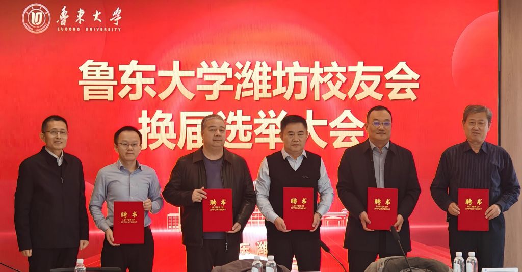 会上,岳远彬为新一届潍坊校友会授旗,并为新任校友会会长、副会长、秘书长颁发聘书。