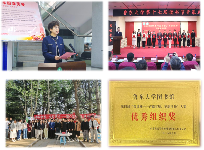 推广阅读、以文化人,文化建设卓有成效。探索构建了“悦读1234”品牌工程,以“读书节”系列活动示范引领,“迎新季”“毕业季”双节点强化,常态化开展“镜心苑”读书沙龙、“一书一影阅世界”书影沙龙、“云雅阁”文化沙龙,从组织、资源、制度、技术四方面强化保障,共开展各类阅读和文化活动150余场次,邀请文化名人100余人次,组织师生参与文化赛事获省级以上荣誉70余项,让校园文化氛围更加浓郁。坚持校地联动、服务社会,与烟台市委党史研究院、烟台图书馆、烟台新华书店等部门以及各区市、街道社区开展红色文化活动、阅读推广系列活动等20余场次,彰显了鲁大红色基因和文化传承创新的新时代担当。