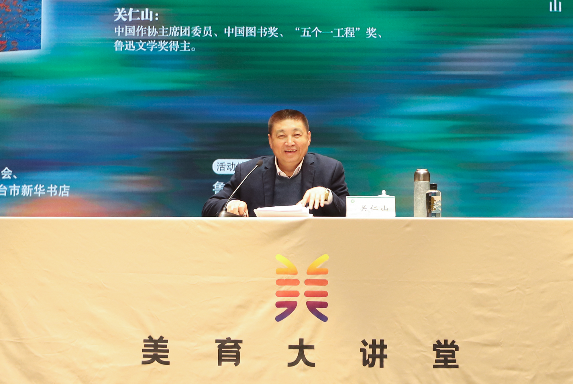 开幕式后,由烟台市委宣传部主办,鲁东大学、作家出版社、烟台市全民阅读联合会及烟台市新华书店联合承办的烟台市美育大讲堂开讲。关仁山先生以“文学引领阅读,认知乡村巨变”为题,围绕新作《太阳照在滹沱河上》,分享了滹沱河畔乡村四十余年变迁与乡村振兴故事,并与师生深入畅谈创作历程,开启了一场充满文学力量的分享之旅。