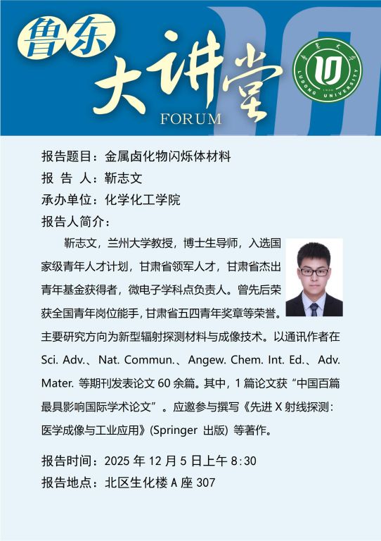 鲁东大讲堂预告丨金属卤化物闪烁体材料【2025年12月5日8:30】