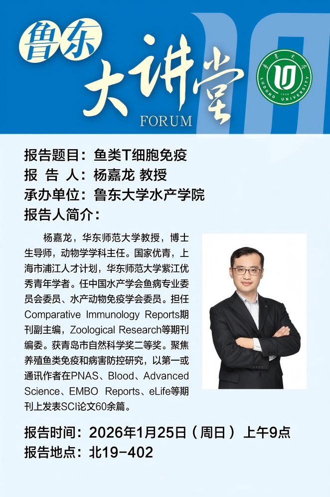 鲁东大讲堂预告丨鱼类T细胞免疫【2026年1月25日9:00】