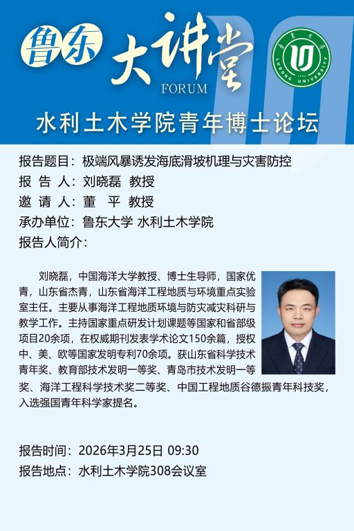 鲁东大讲堂预告丨极端风暴诱发海底滑坡机理与灾害防控【2026年3月25日9:30】